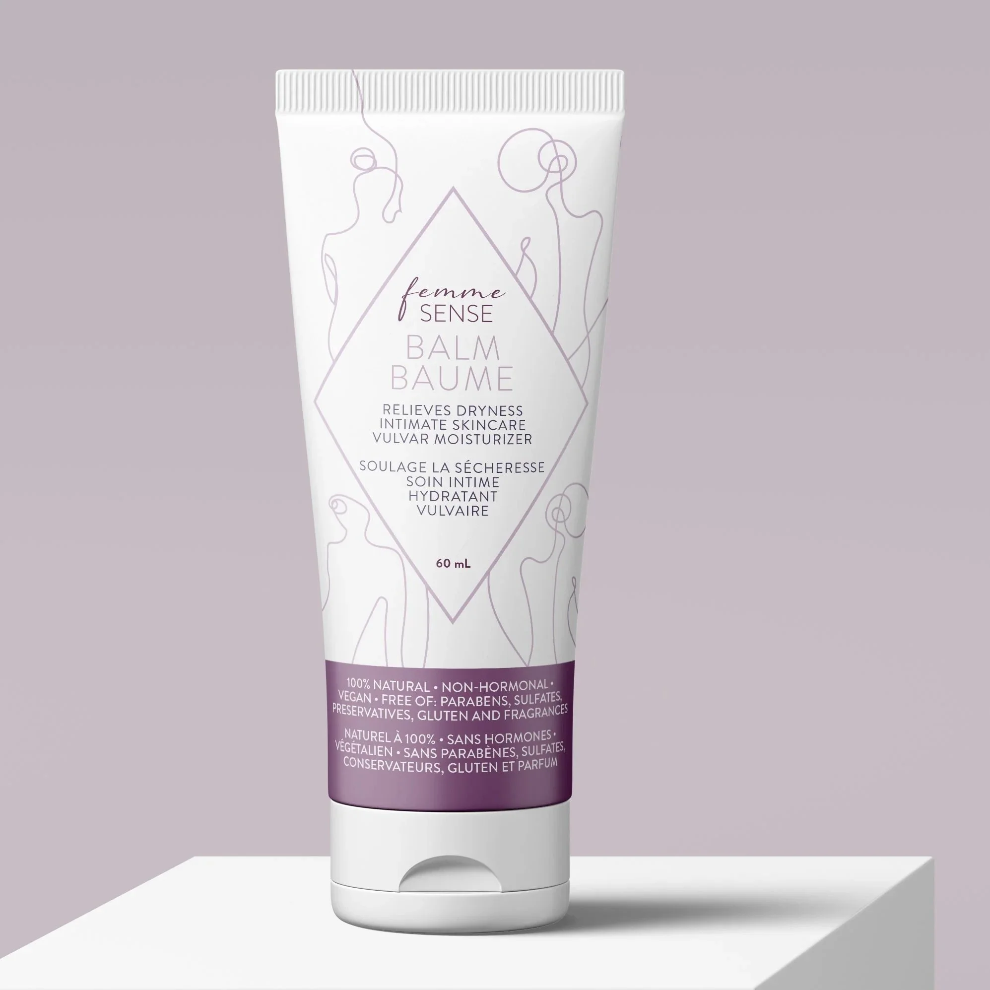 FemmeSense Balm is a natural moisturizer to help soothe dry vulvar skin and chafing. It is specially formulated to provide long-lasting moisture, with a smooth consistency and fast absorption so you won’t feel sticky or uncomfortable.